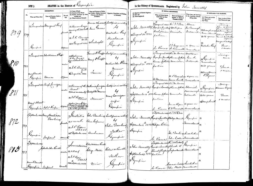 Margaret and Malcolm Key had seven children and by 1868 they had settled in Gympie. This is about the time that her brother Thomas Malcolm Waddell’s wife and children arrived in Gympie. She had her 7th child, Margaret, on 14 April 1880 and died 2 weeks later on 26th August 1880 due to hemorrhage due to childbirth.