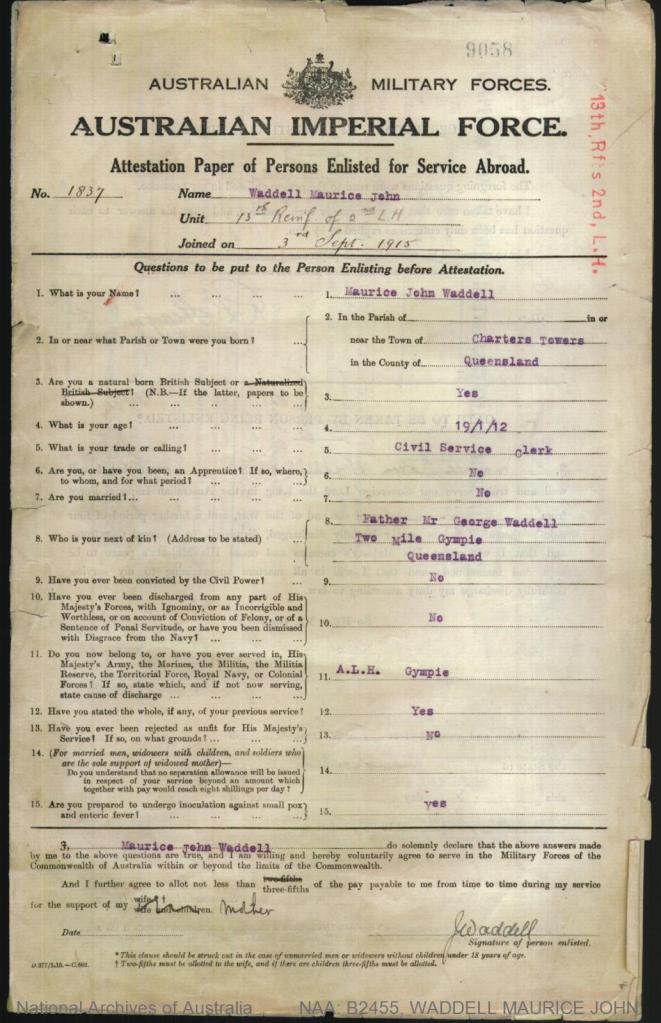 [3] Jack Waddells enlistment and military records at National Archives Australia https://recordsearch.naa.gov.au/SearchNRetrieve/Interface/ViewImage.aspx?B=8398699
