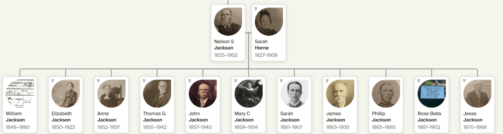 They had 11 children together, starting with William Jackson b1848 and ending with Jesse Jackson b1870.