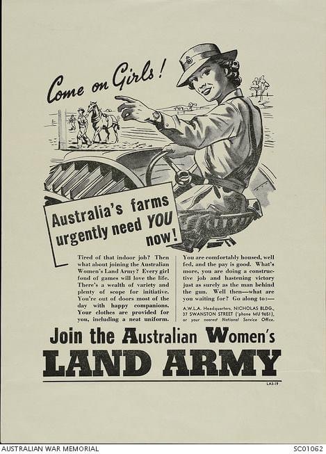 [1] Womens Land Army Posters, Australian War Museum, https://www.awm.gov.au/collection/C96648